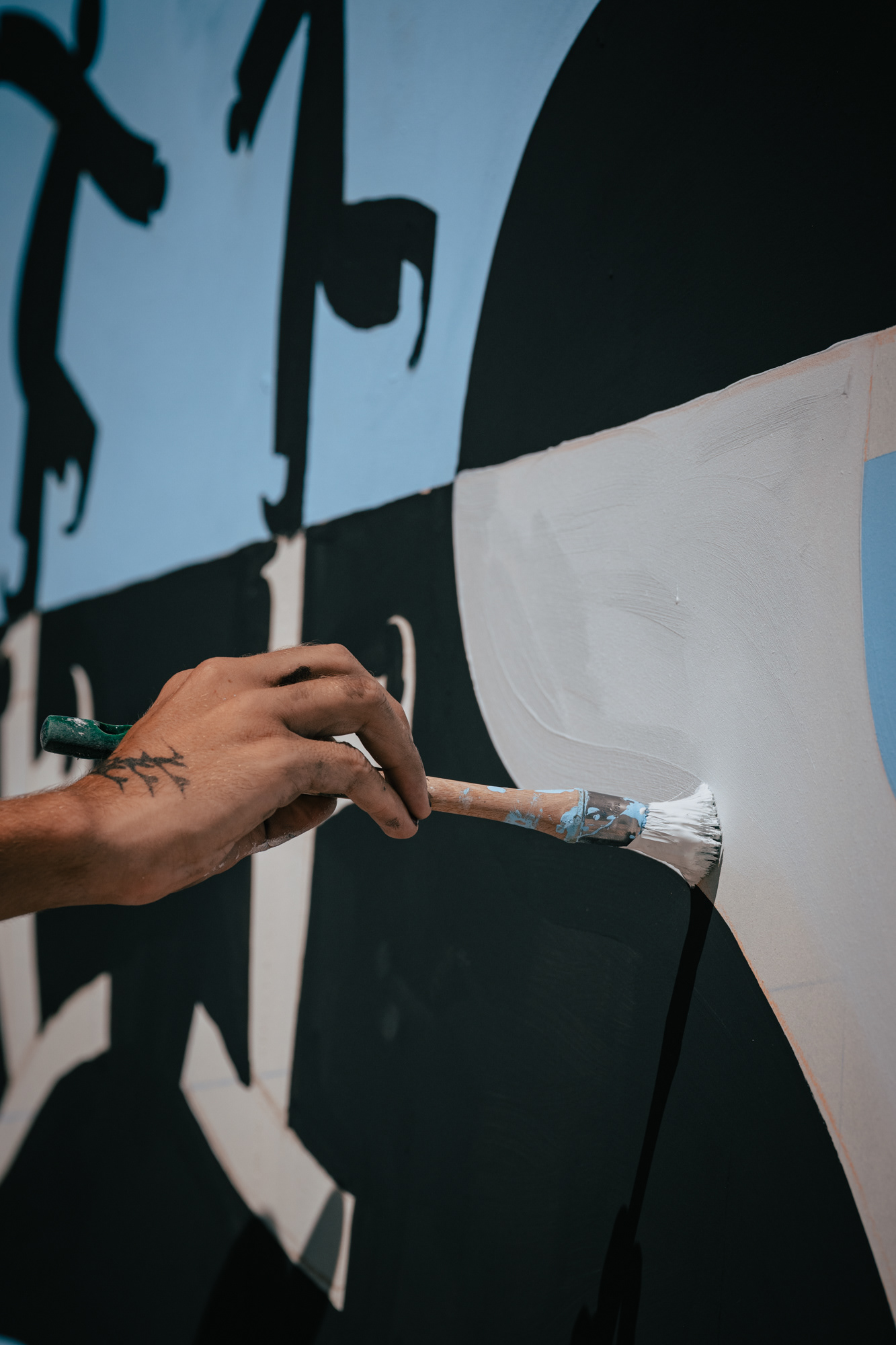 Au cours du festival, j’ai réalisé deux fresques, dont une en collaboration avec l’artiste muraliste française Perrine Honoré, basée à Barcelone. Travailler à ses côtés m’a rappelé avec force que la joie naît souvent de l’expérimentation et de l’imprévu.