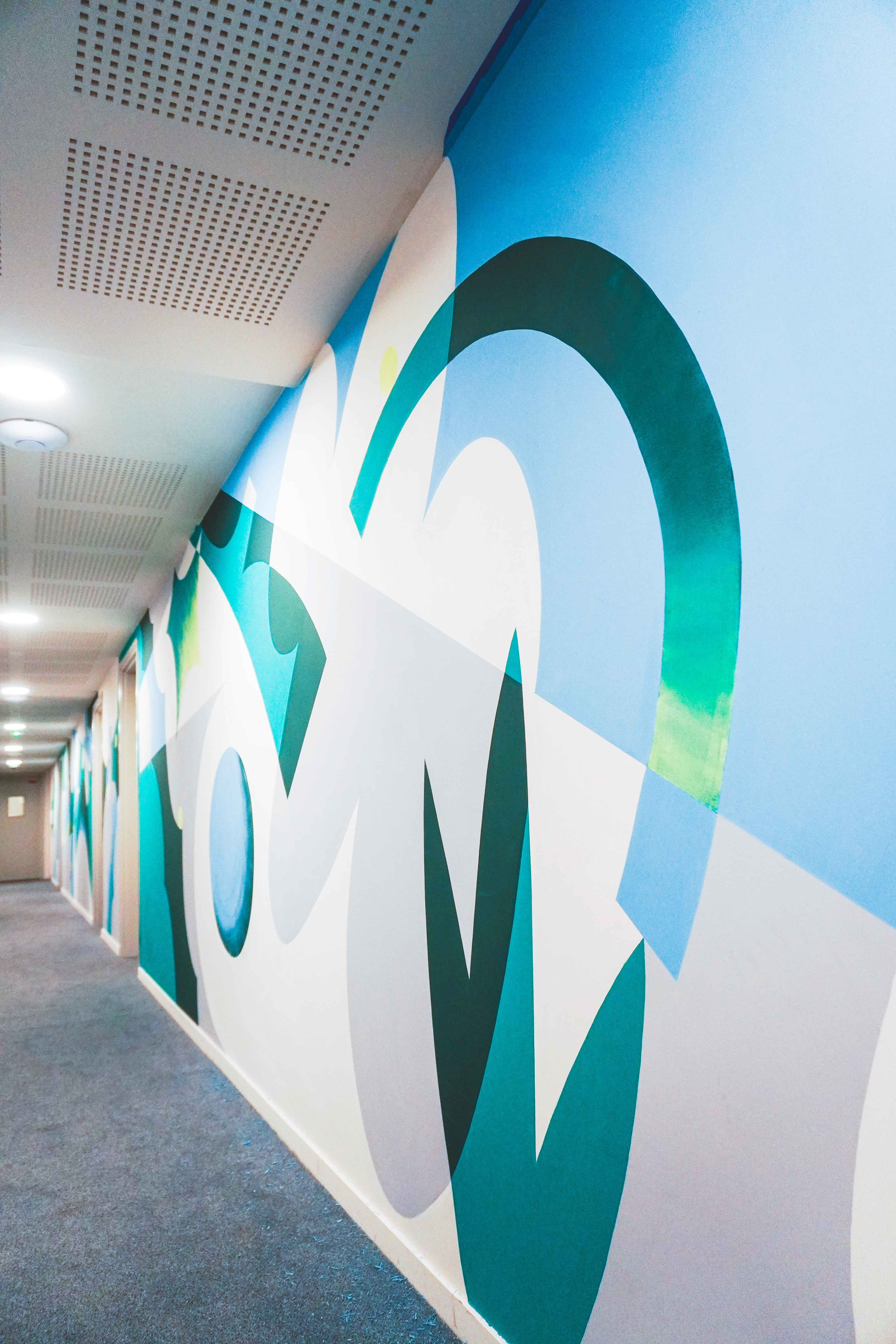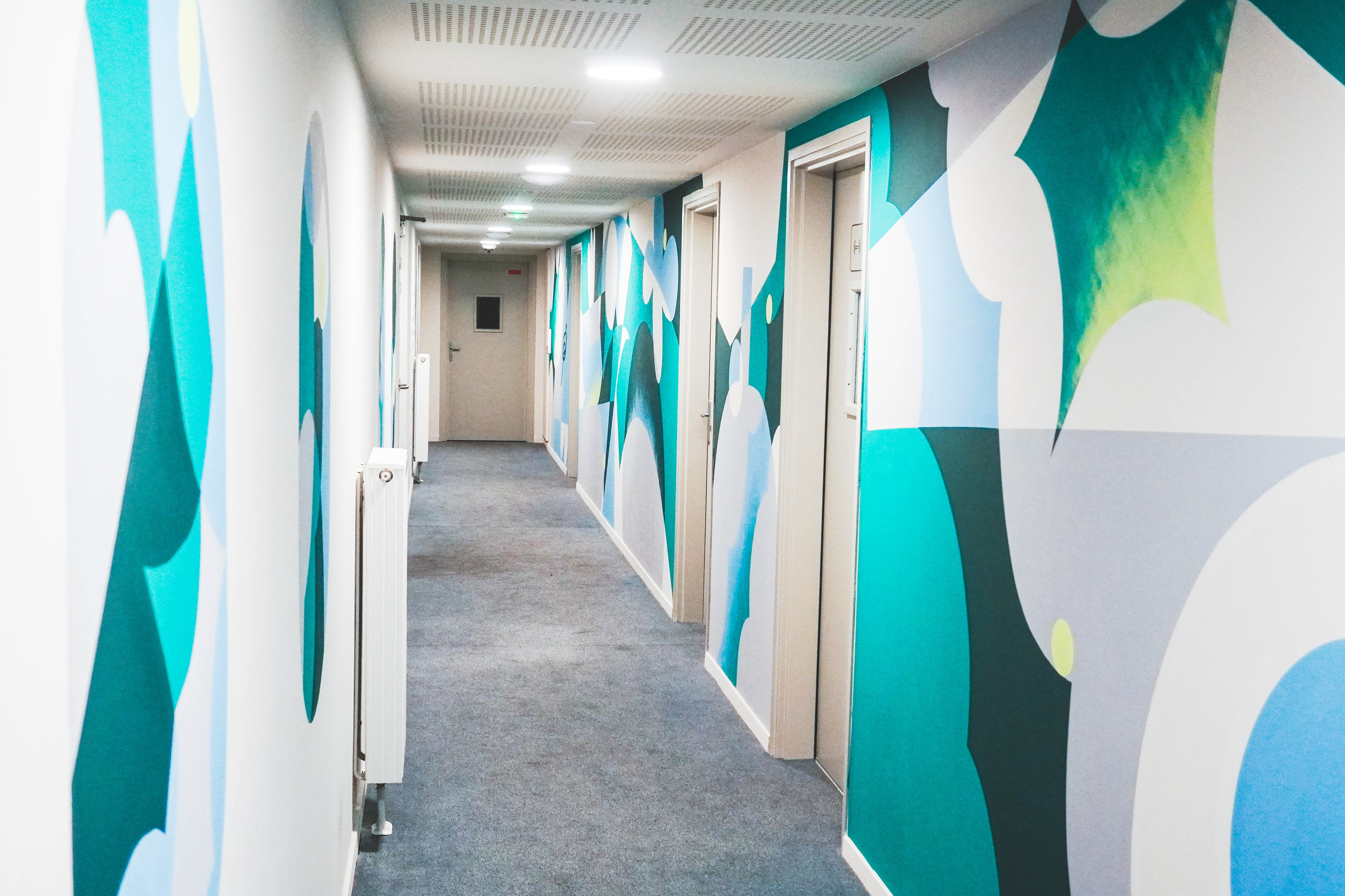 Ce fut un véritable plaisir d’explorer ce style graphique que j’affectionne tout particulièrement, et de jouer avec les formes, la composition et la couleur, dans une approche totalement nouvelle pour un espace architectural.